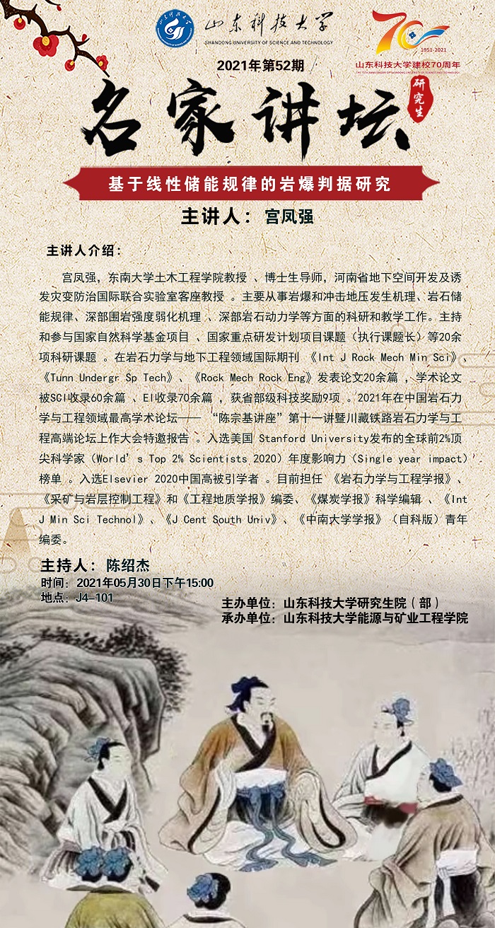 “名家讲坛”2021年第52期:基于线性储能规律的岩爆判据研究(总690期)