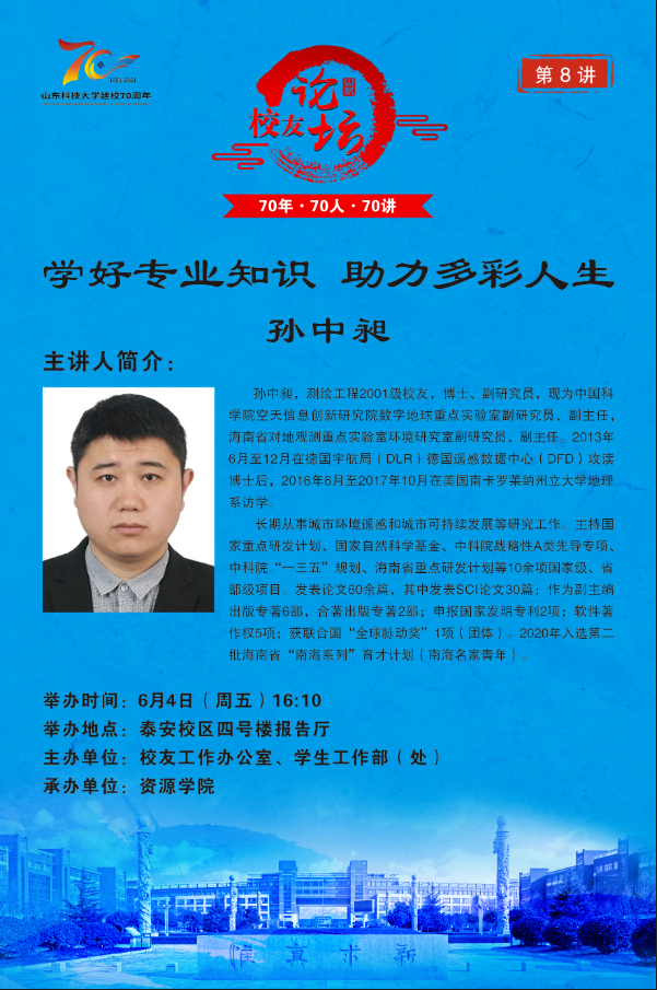 “70年·70人·70讲” 校友论坛第8讲:学好专业知识 助力多彩人生