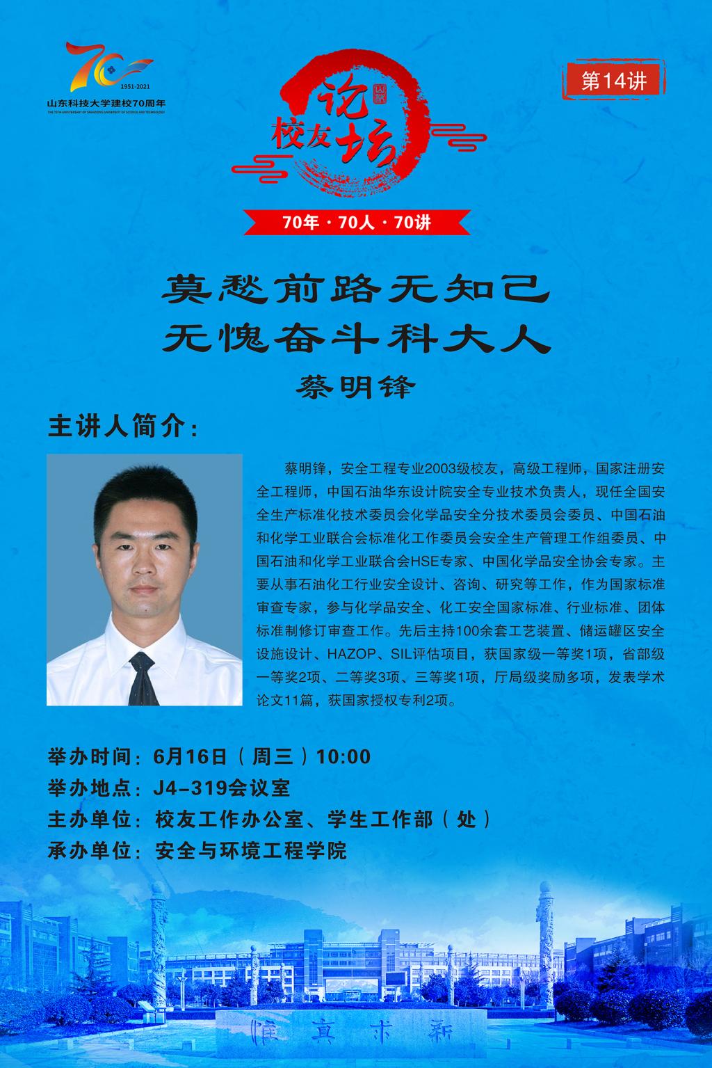 “70年·70人·70讲”校友论坛第14讲:莫愁前路无知己 无愧奋斗科大人