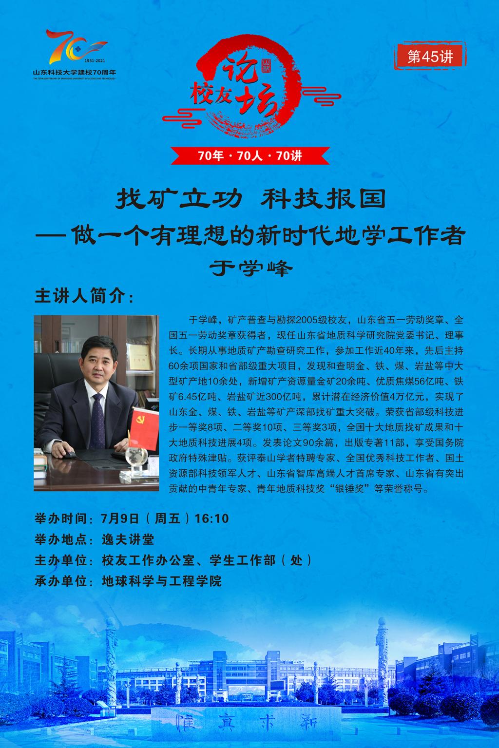 “70年·70人·70讲”校友论坛第45讲:找矿立功 科技报国——做一个有理想的新时代地学工作者