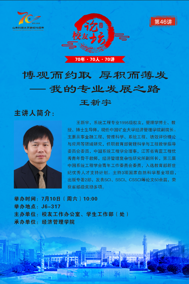 “70年·70人·70讲”校友论坛第46讲:博观而约取 厚积而薄发——我的专业发展之路