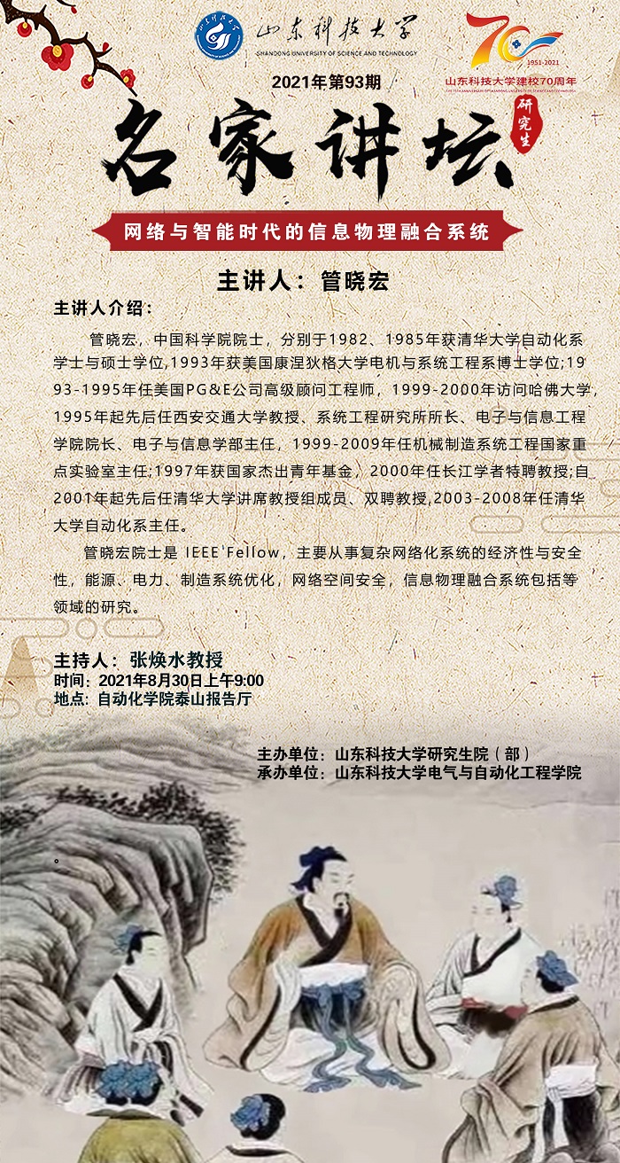“名家讲坛”2021年第93期:网络与智能时代的信息物理融合系统(总731期)