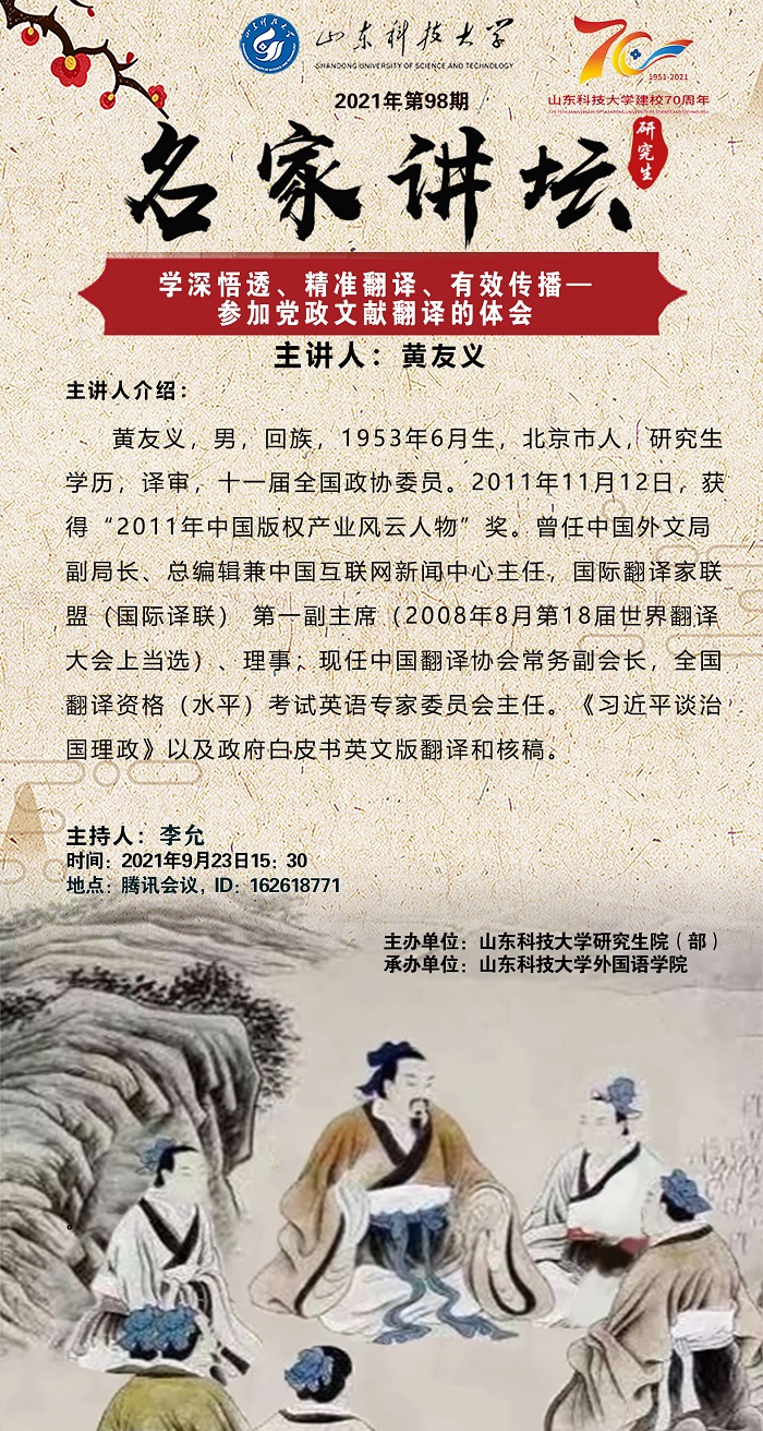 “名家讲坛”2021年第98期:学深悟透、精准翻译、有效传播——参加党政文献翻译的体会(总736期)