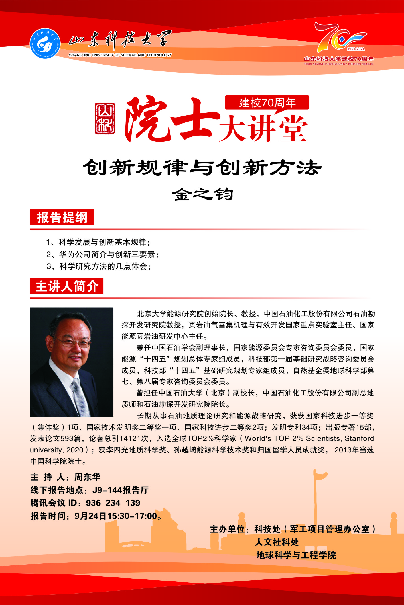 建校70周年院士大讲堂——创新规律与创新方法