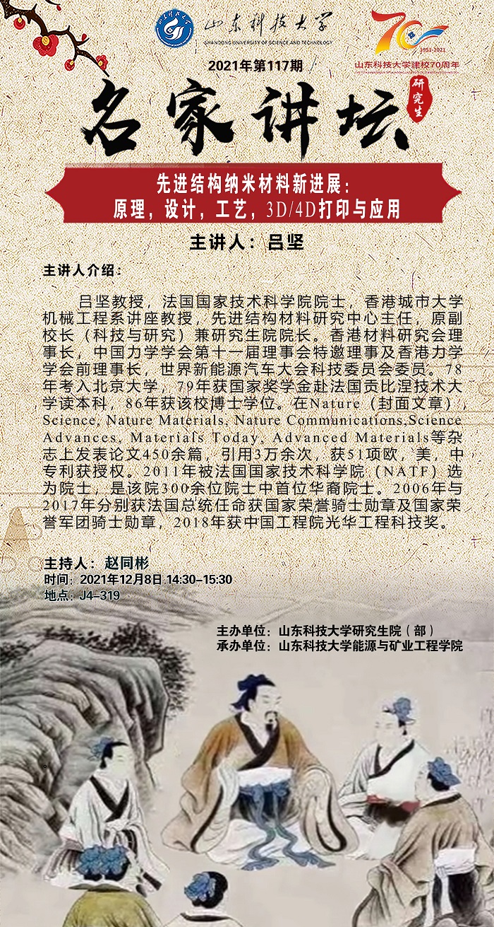 “名家讲坛”2021年第117期:先进结构纳米材料新进展:原理,设计,工艺,3D/4D打印与应用(总755期)