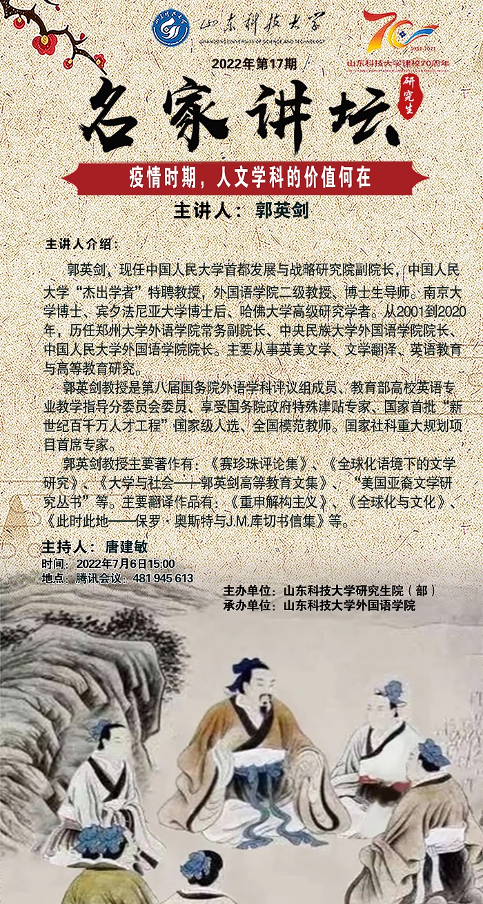 “名家讲坛”2022年第17期:疫情时期,人文学科的价值何在(总782期)