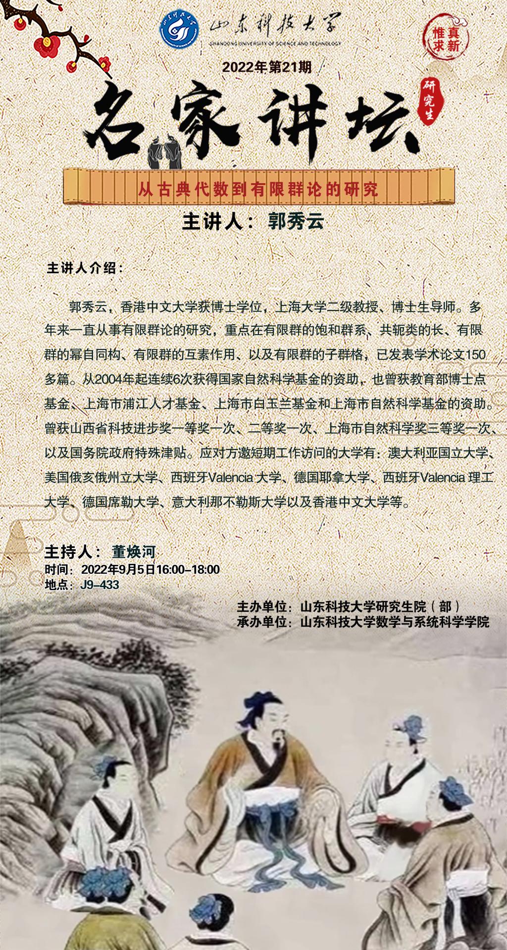 “名家讲坛”2022年第21期:从古典代数到有限群论的研究