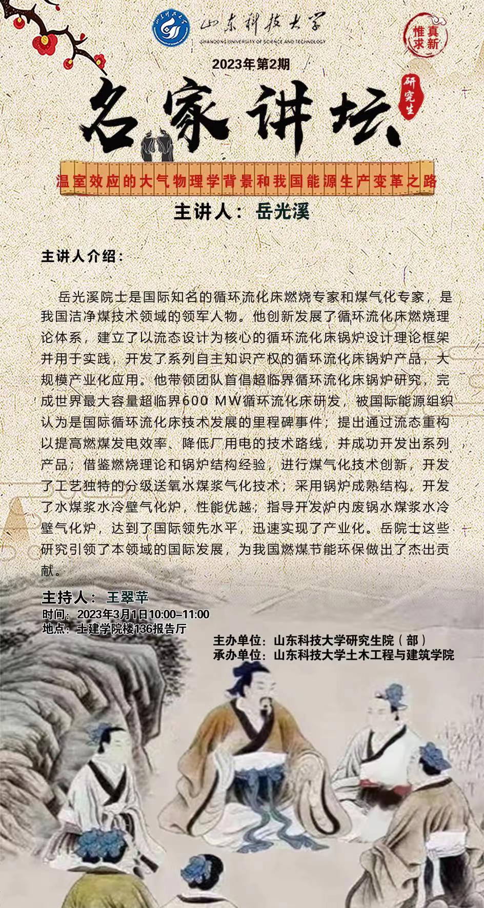 “名家讲坛”2023年第2期:温室效应的大气物理学背景和我国能源生产变革之路(总803期)