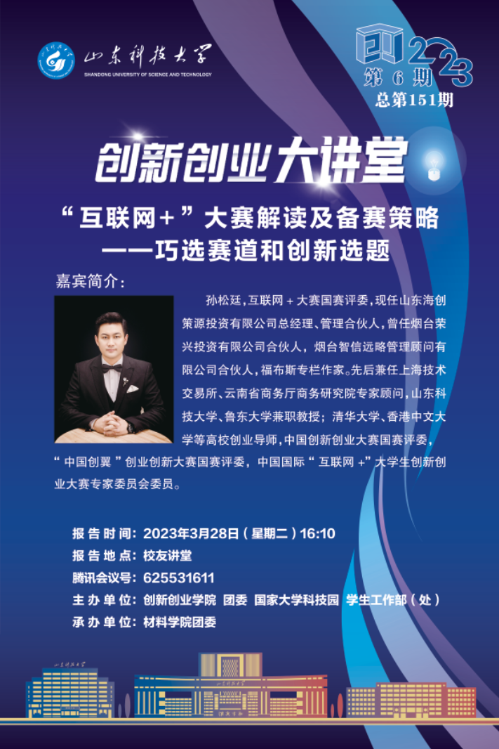 创新创业大讲堂2023年第6期:“互联网+”大赛解读及备赛策略——巧选赛道和创新选题