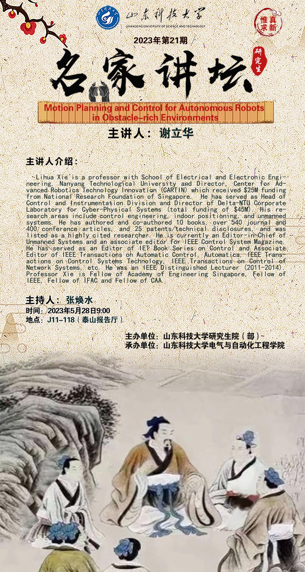 “名家讲坛”2023年第21期:Motion Planning and Control for Autonomous Robots in Obstacle-rich Environments(总822期)