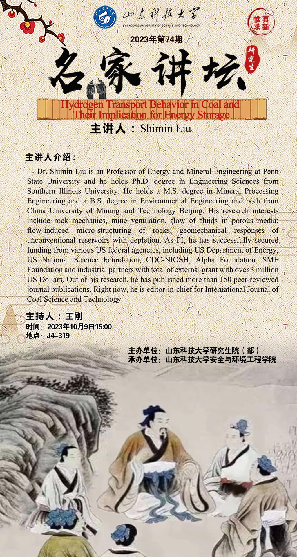 “名家讲坛”2023年第74期:Hydrogen Transport Behavior in Coal and Their Implication for Energy Storage(总875期)