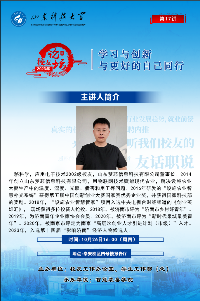 “校友论坛”2023年第17讲:学习与创新,与更好的自己同行