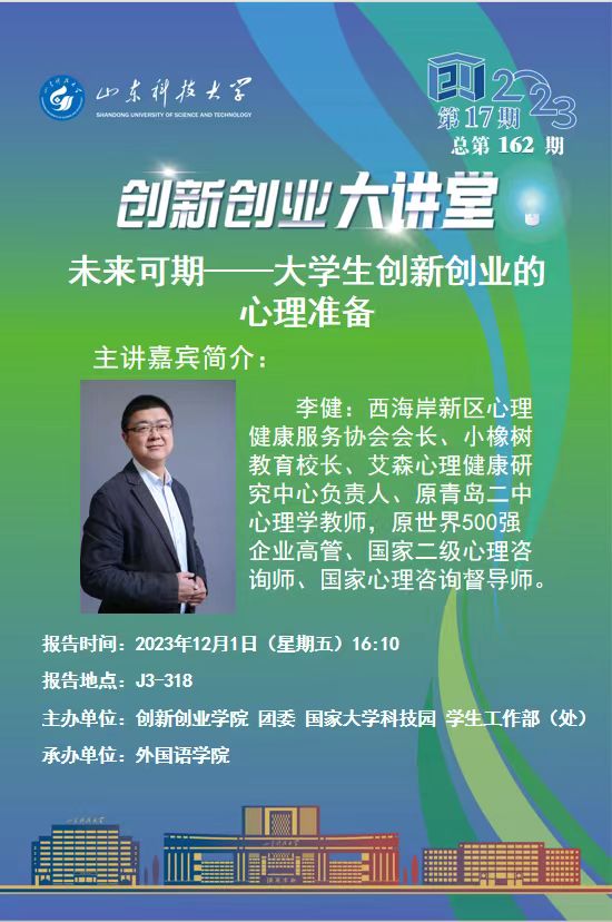 创新创业大讲堂第17期:未来可期--大学生创新创业的心理准备