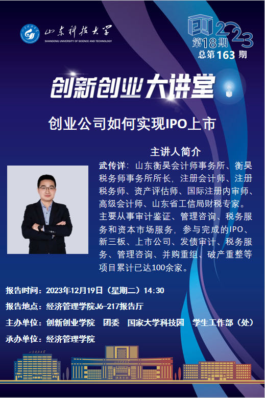 创新创业大讲堂第18讲:创业公司如何实现IPO上市