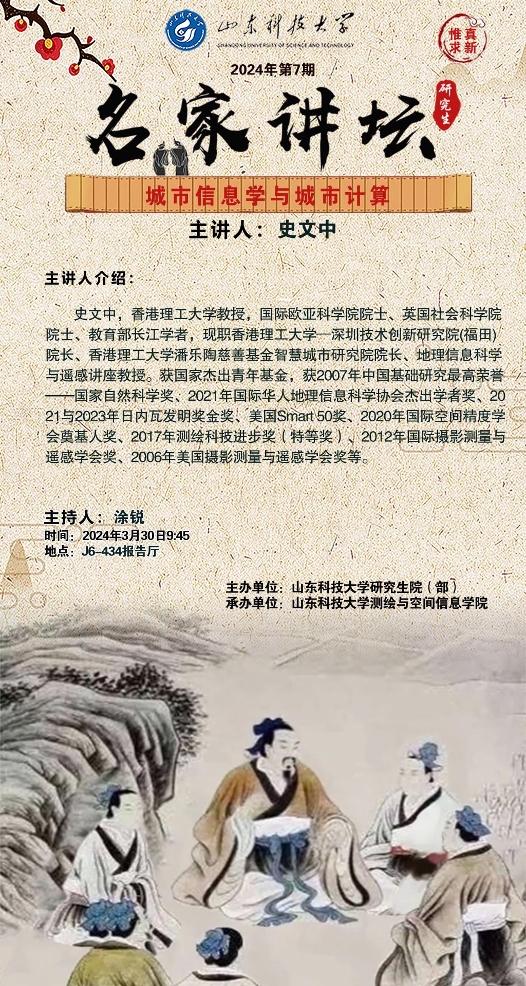 “名家讲坛”2024年第7期:城市信息学与城市计算(总901期)