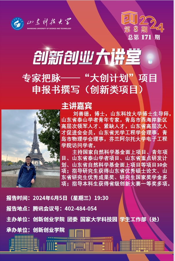 创新创业大讲堂2024年第8期:创新创业大讲堂专家把脉“大创计划、项目申报书撰写(创新类项目)