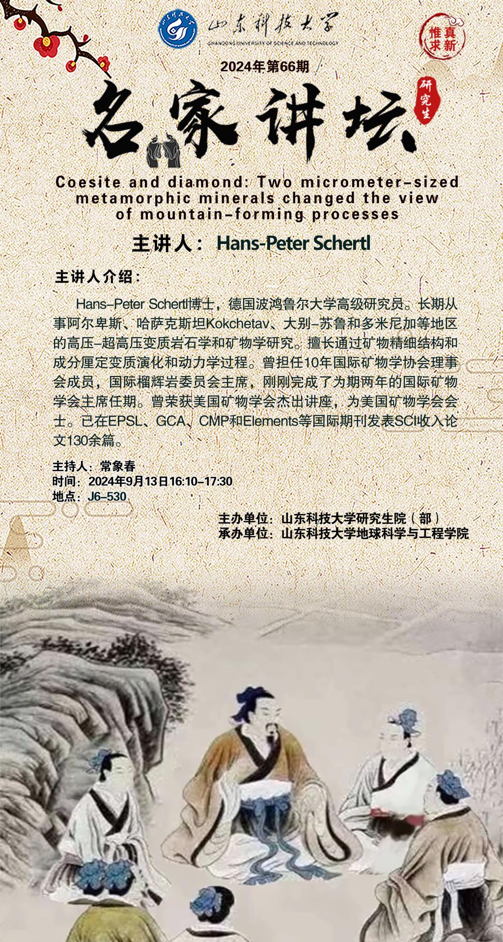 “名家讲坛”2024年第66期:Coesite and diamond: Two micrometer-sized metamorphic minerals changed the view of mountain-forming processes(总960期)