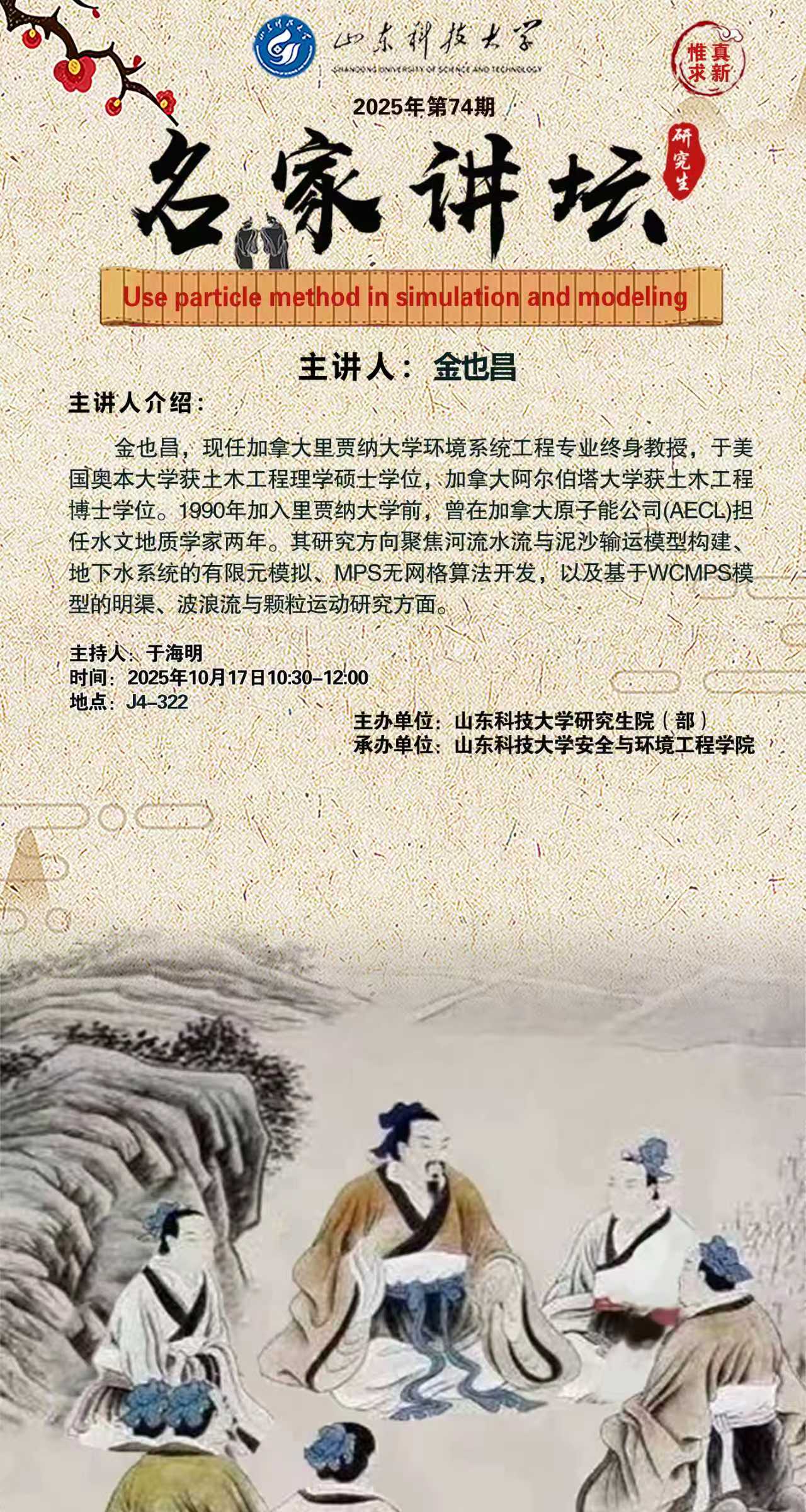 “名家讲坛”2025年第74期:Use particle method in simulation and modeling(总1079期)